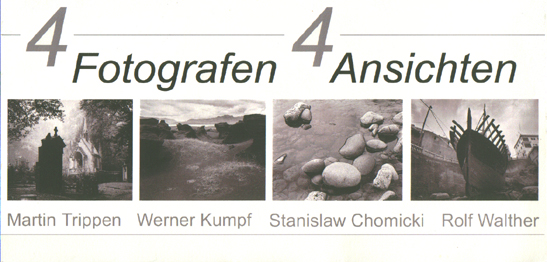 Fotoausstellung Von 22.09.02 bis 26.10.2002 Finther Scheier Poststraße 37 55126 Mainz Öffnungszeiten: Mittwoch bis Sonntag 16.00 bis 20.00 Uhr Anfahrt: Über A60, Abfahrt Mainz-Finthen, geradeaus, in Ortsmitte hinter Tankstelle / Markthalle nächse Straße (am Obstmarkt) rechts abbiegen. Von dort ca. 300m über Bierothstr. bis zur Poststraße (=2. Parallelstraße vom Obstmarkt) und der Finther Scheier.